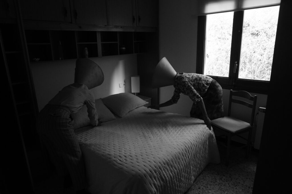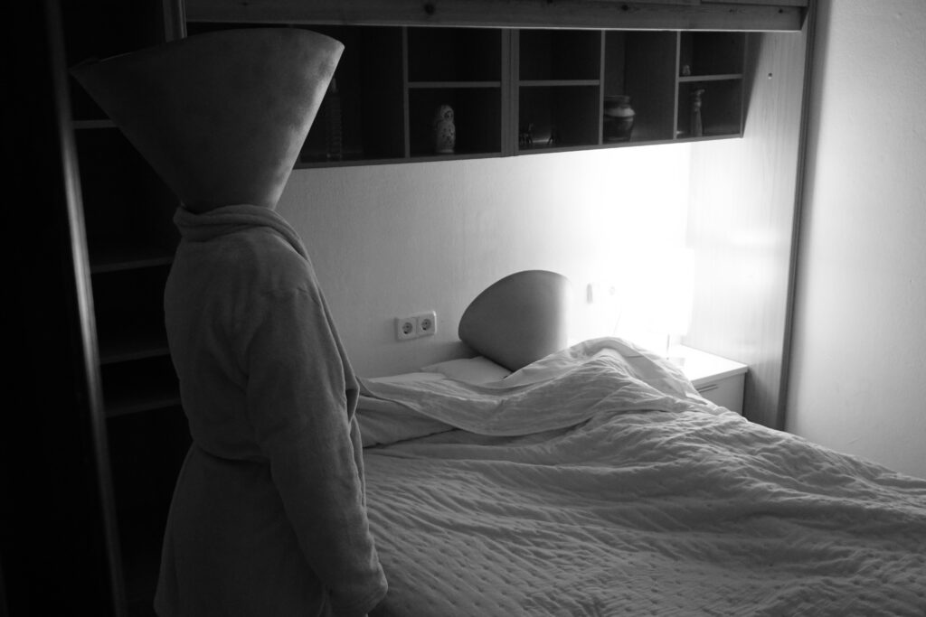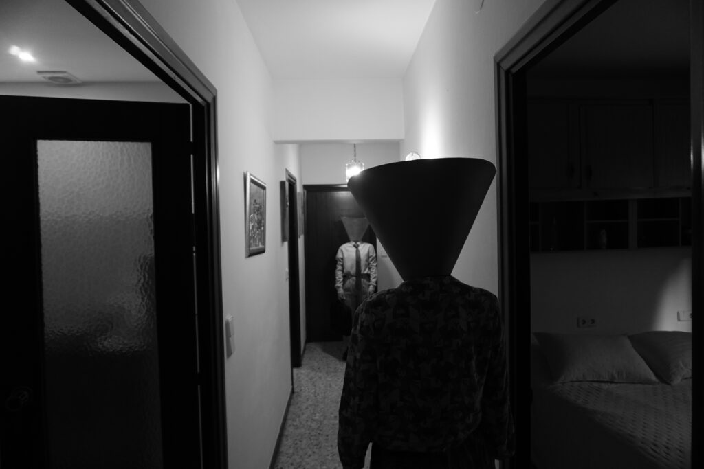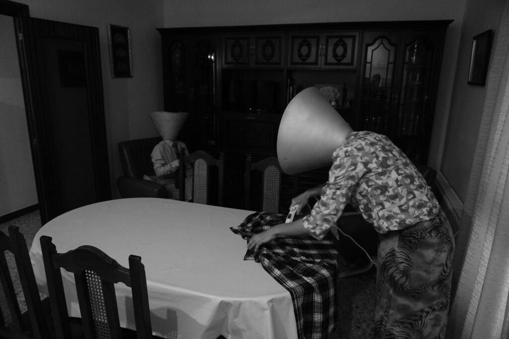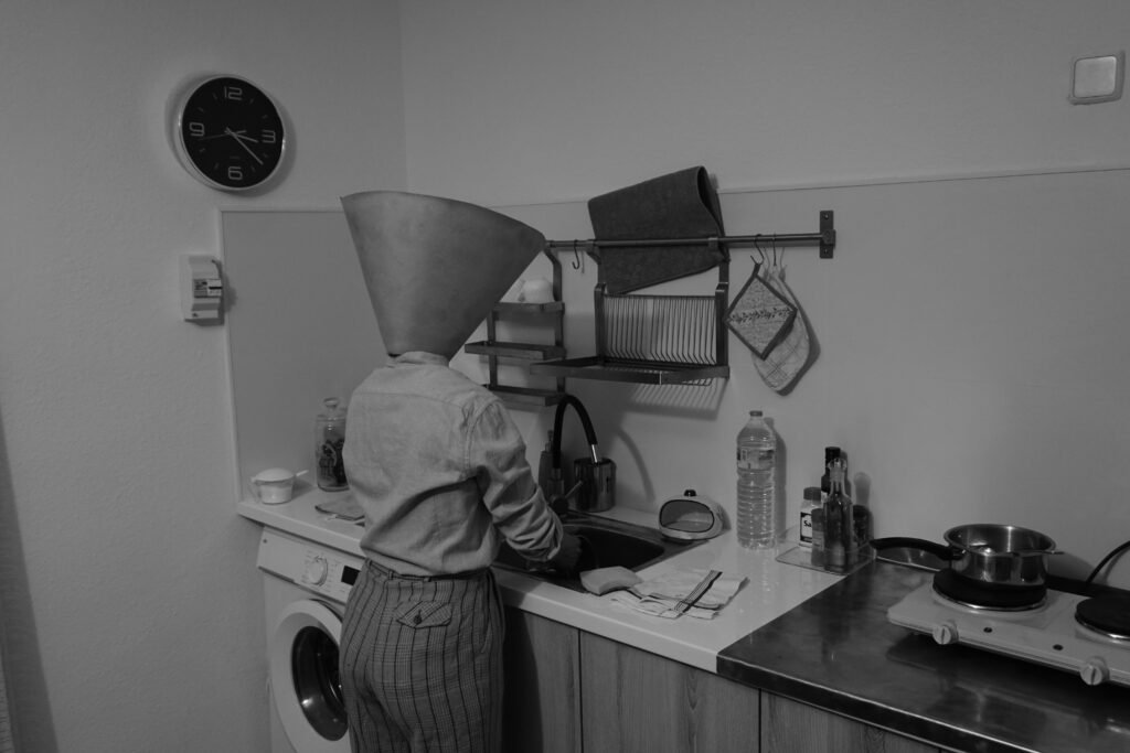 In Cones of Silence, intimacy appears as a shared architecture of separation. Two bodies move through domestic rituals and routines with their attention funneled inward, each enclosed in a private corridor of sound and vision. The scenes are familiar but every gesture seems slightly delayed, as if contact had to travel through layers before it could reach the other.
